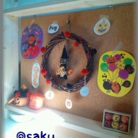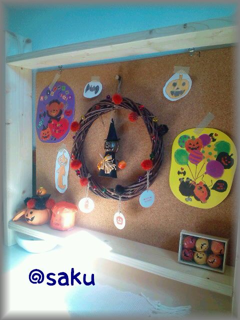紙製のかぼちゃの小物入れは、昨日私が寝てる間に作ってた。
