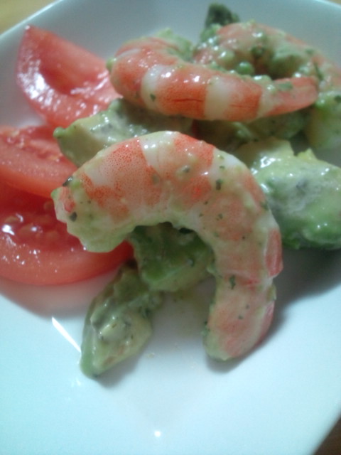 あとは海老とアボカドのサラダとクリームチーズのカナッペ。