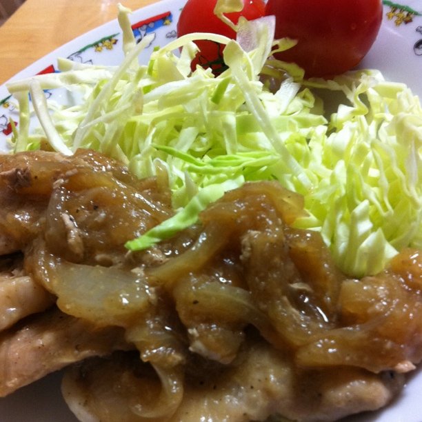 晩御飯。 豚ロースがあったので、 リクエストに答えて生姜焼きにしたよ。 玉ねぎソースでちょっと甘めに。 ※自分用メモ(すぐ忘れるからw) お肉は塩コショウしてから小麦粉をまぶしておく タレは生姜、醤油、酒、みりん、すりおろし玉ねぎ 玉ねぎのスライスを炒めて、透き通った所にお肉を乗せる そのままふたをして蒸し焼き お肉に火が通ったら、タレを投入 絡めながら炒め煮にして、水分が減ったらおわり。 あとはもずくスープと納豆。 ごはんがすすんだようでなによりでした。