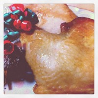 昨日から味付けしておいたローストチキン。