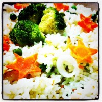 白米じゃ地味かな?と思ってピラフを炊いたよ。