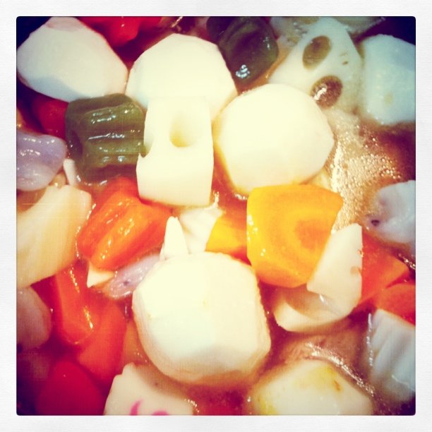 さんむい。 今朝起きたら雪がどっさり積もってた。 雪かきは3回しました(夫が)。 おせちの準備で換気扇回しっぱなしだから寒い! うま煮。生協で可愛いこんにゃく買ったよ。 煮たら色があせちゃったけどね。 栗きんとん。 瓶詰めじゃなくて安い割れ栗を使ったら、 シロップがなかったw なので照りは少ない。くちなし使わなかったから、 色も控えめ。 若干地味な栗きんとんになりました。 甘さも控えめだよ。 他に 豚の角煮。黒豆。紅白なます。えび煮。はできてる。 あとは明日作るよ。
