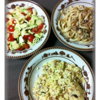 焼きうどんと炒飯(具は同じw)マカロニサラダ。