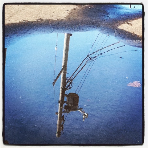 逆さに見える電信柱。