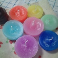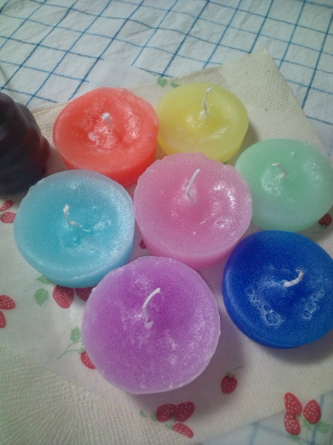 紙コップに残ったいろんな色のろうをひとまとめにして作った物。