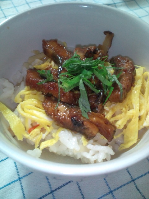 だから、ちらし寿司の素で酢飯にして、うなぎはちょっとだけ。