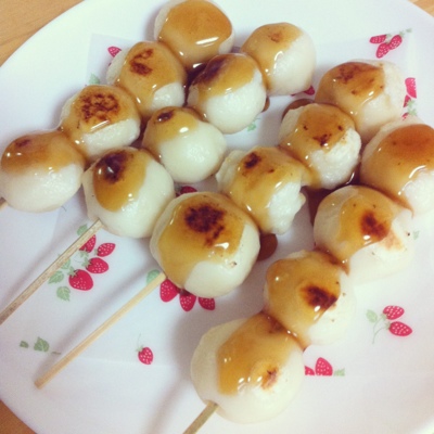 白玉粉はお豆腐(私は絹ごし派)でこねると冷めても硬くなりにくいお団子になるよー。